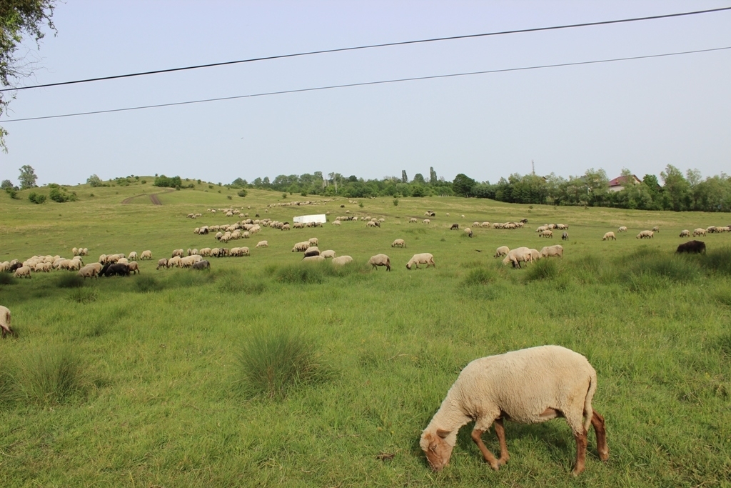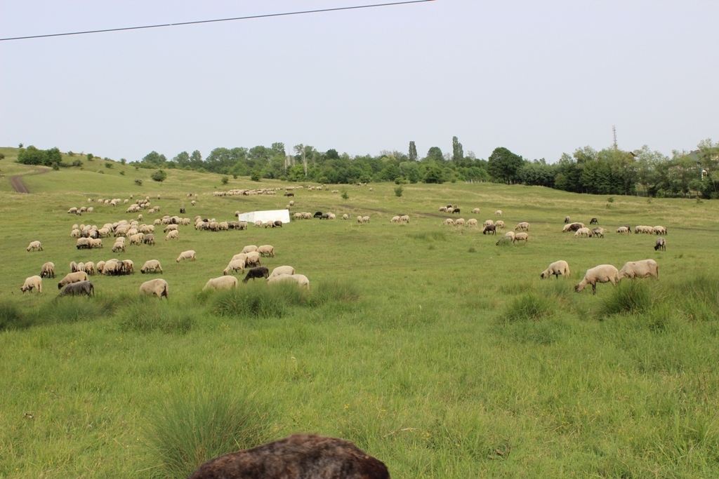flock of sheep at Muscel Campina with beautiful landscape view